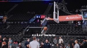努力坚持!杨瀚森赛前热身与助教直接交流 场上可以摆脱翻译了