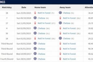 切尔西vs诺丁汉森林战绩:近10场蓝军6胜3平1负,进20球失8球