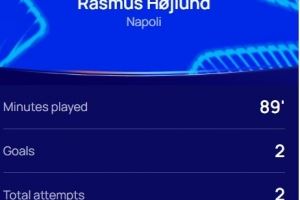 梅开二度,官方:霍伊伦当选那不勒斯2-1葡萄牙体育全场最佳